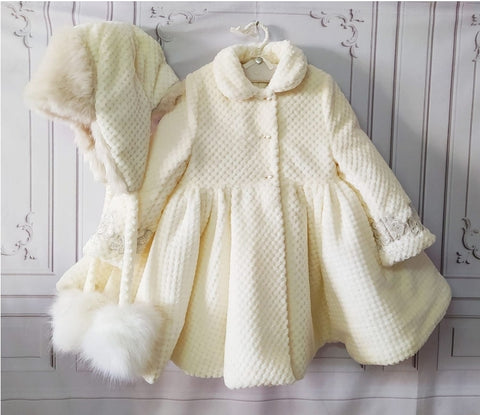 Sonata Infantil Spanish girls Winter hats with fur trim. The matching coats and capes are available to order separately. This item is made to order and takes approximately 6-8 weeks to arrive from the order date.