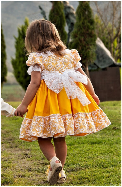 Sonata Infantil Spanish girls lemon smocked Easter bunny dress. True to size fitting. The matching boys set is also available here True to size fitting. This item is made to order and takes approximately 8 weeks to arrive from the order date.   Kindly note items which are 'made to order' are exempt from a return as they are ordered in by customer request. If you need measurements or your item sooner, please contact us before ordering.