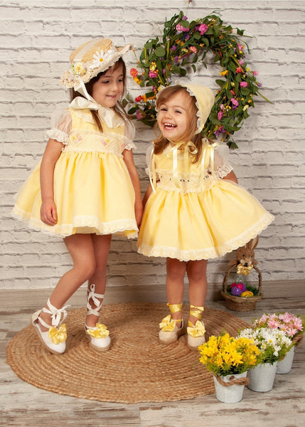 Sonata Infantil Spanish Girls Lemon Smocked Easter Dress VE2201 - MADE TO ORDER
