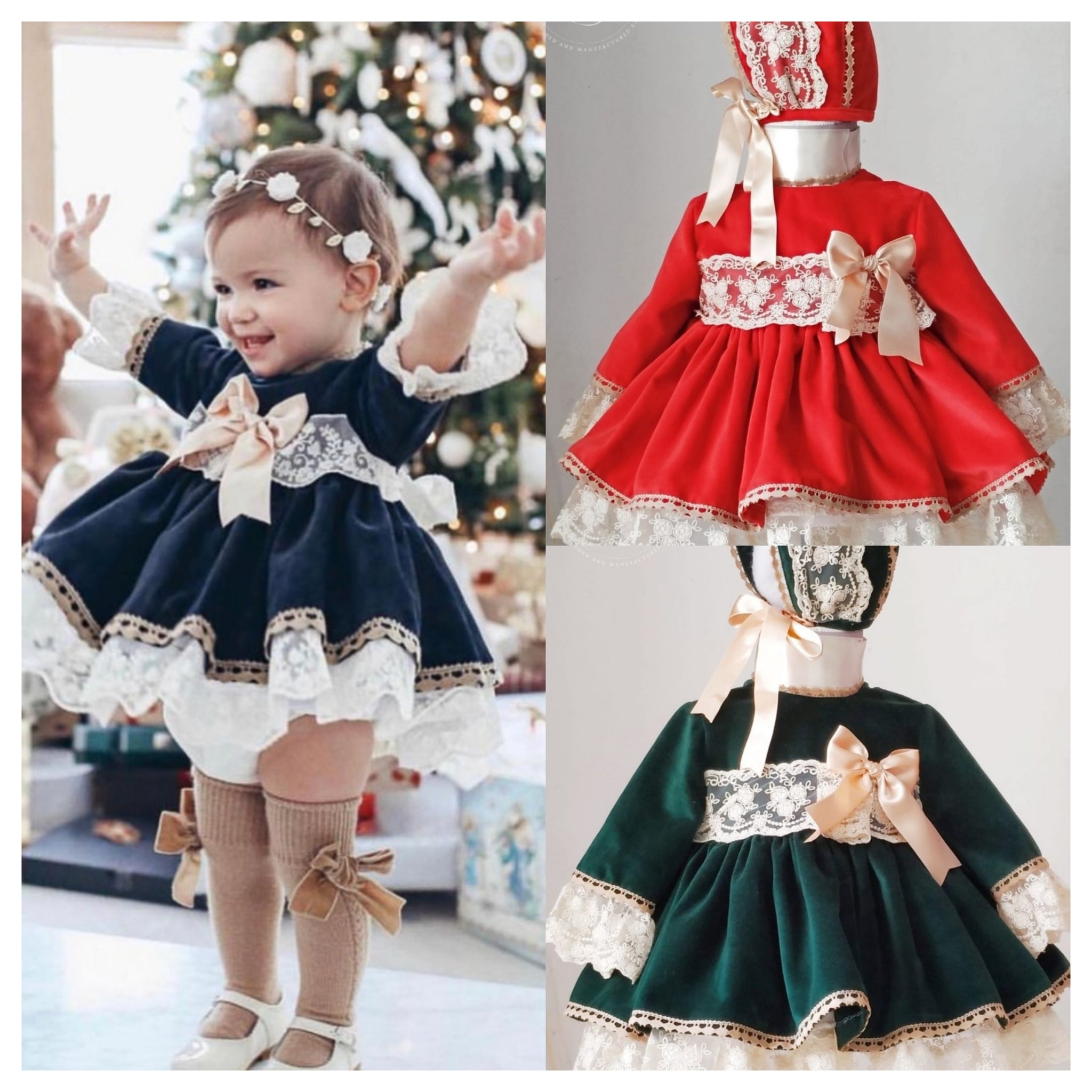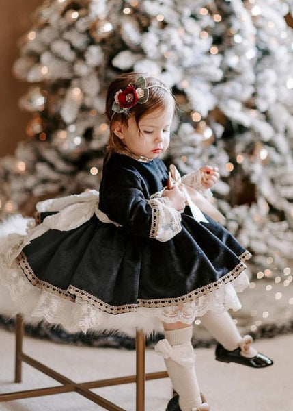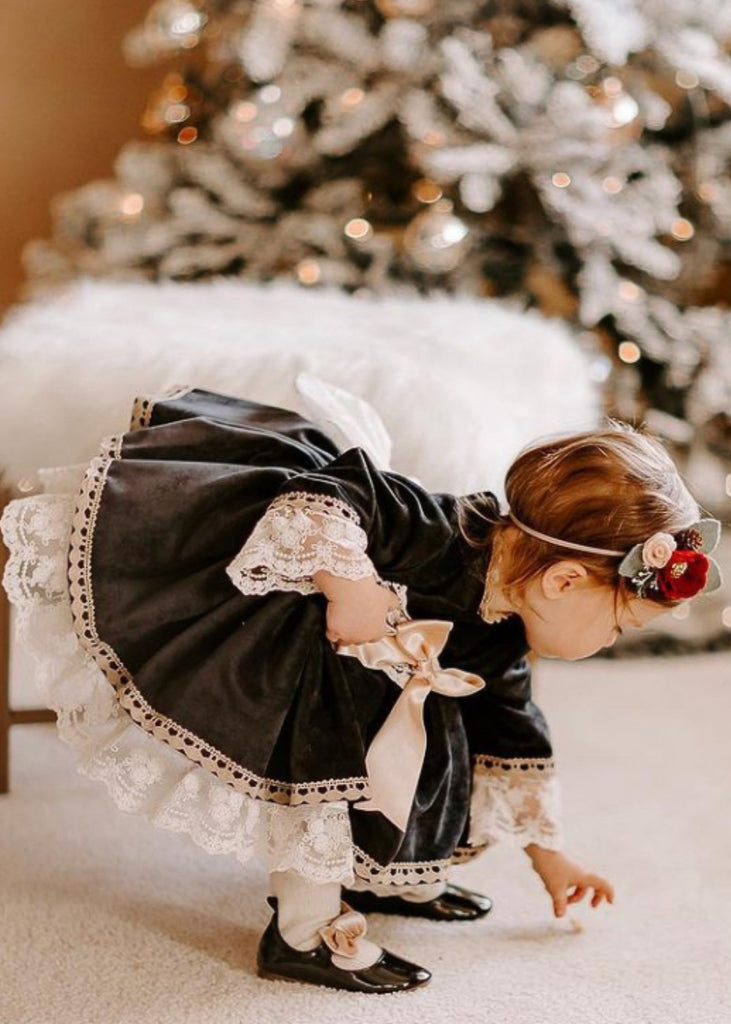 Sonata Infantil Spanish Girls Velvet Puffball Dress MD219 - Navy, Red, Green - MADE TO ORDER