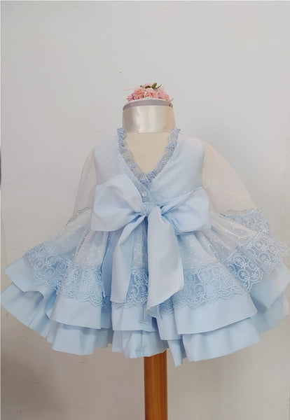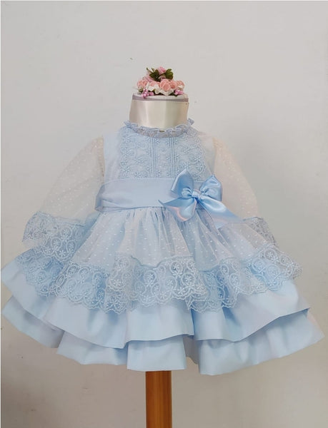 Sonata Infantil Spanish Girls Blue Lace Puffball Dress MOD41 - MADE TO ORDER