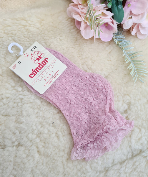 Condor Spanish girls pink lace ankle socks