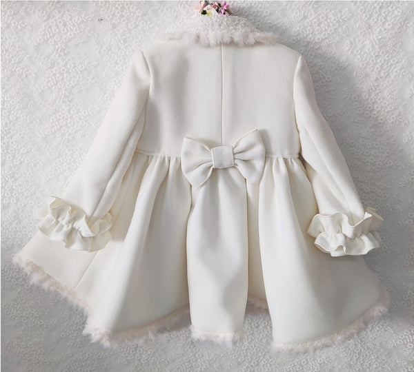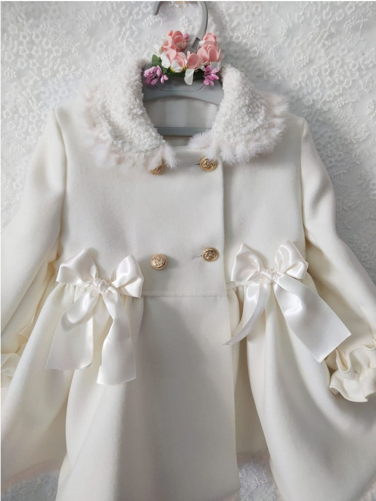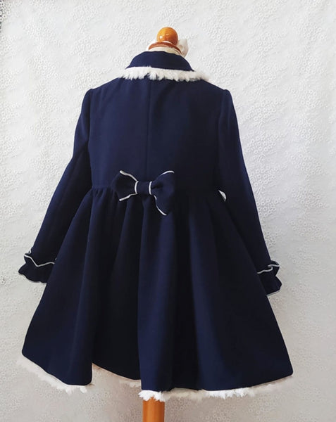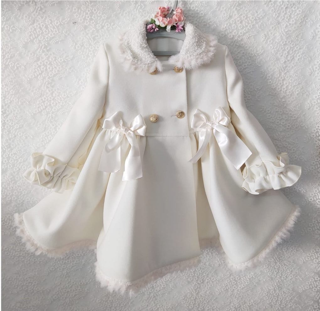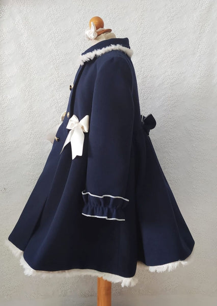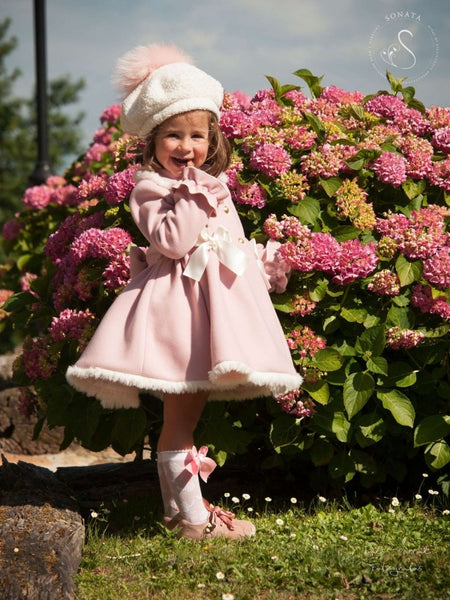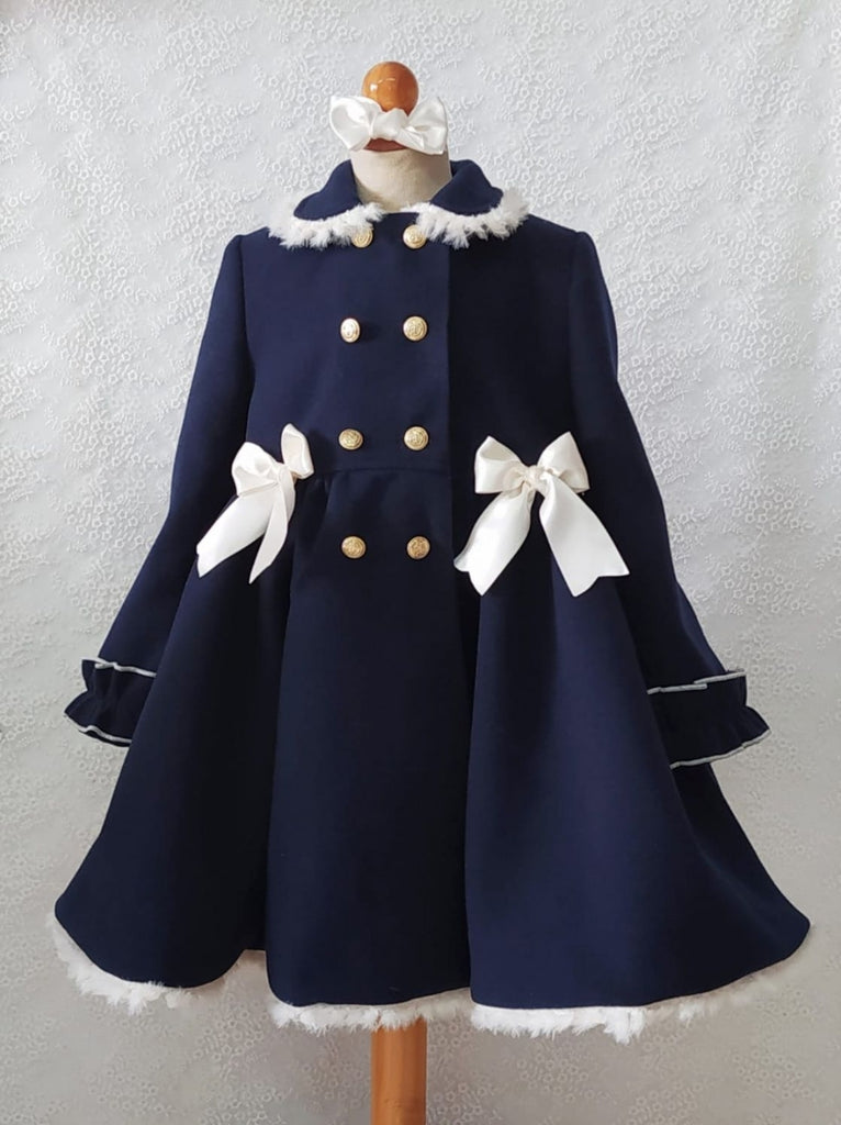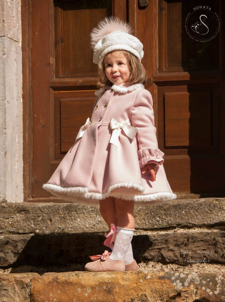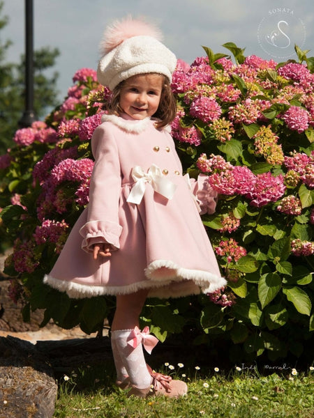 Sonata Infantil Spanish girls handmade winter coats. Fully lined with fur trim and front button fastening. This item is made to order and takes approximately 6- 8 weeks to arrive from the order date. Beret isn't included but available separately here. Socks are available to purchase here.