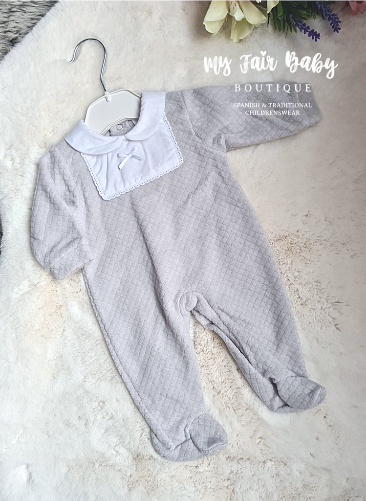 Traditional Unisex Baby Grey Velour Sleepsuit/Babygrow - 9m