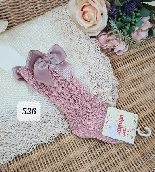 Condor Spanish girls cotton openwork knee high bow socks in colour shade Pale Pink 526