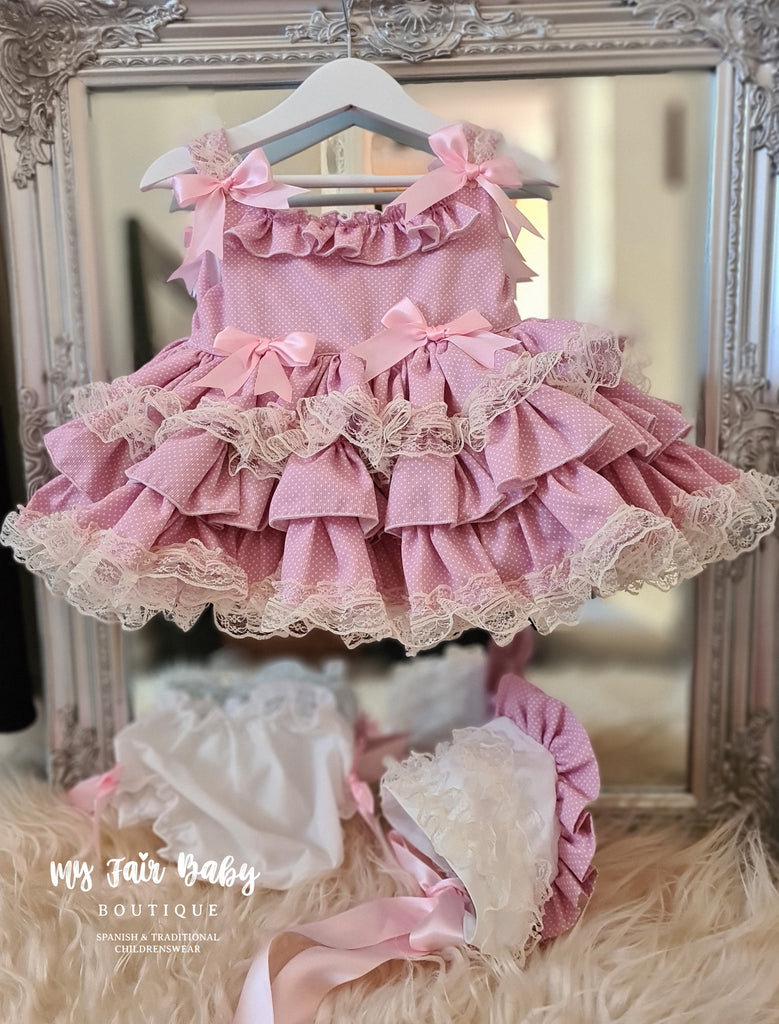 Ela Confeccion Spanish Girls Pink Lace Puffball Dress - MADE TO ORDER