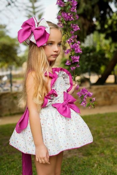Ela Confeccion SS25 Spanish Girls Hot Pink Floral Sun Dress - MADE TO ORDER