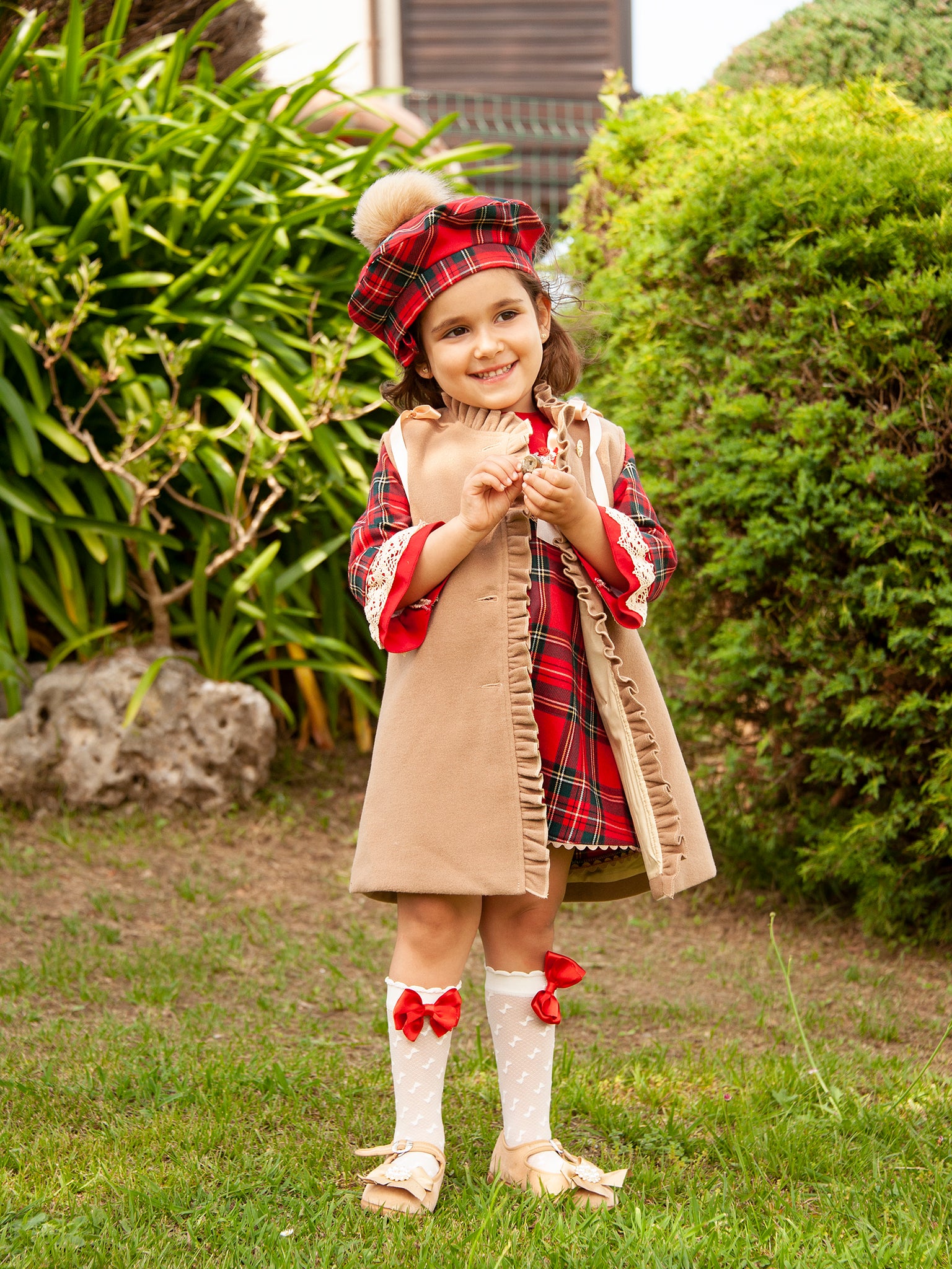 This item is made to order and takes approximately 8 weeks to arrive from the order date. Beautiful Spanish girls camel winter vest by Sonata. The dress the model is wearing can be found here. And the beret can be found here.