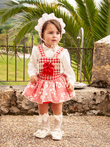Sonata Infantil Spanish Girls Red Dogtooth Skort & Blouse Set IN2310 - MADE TO ORDER