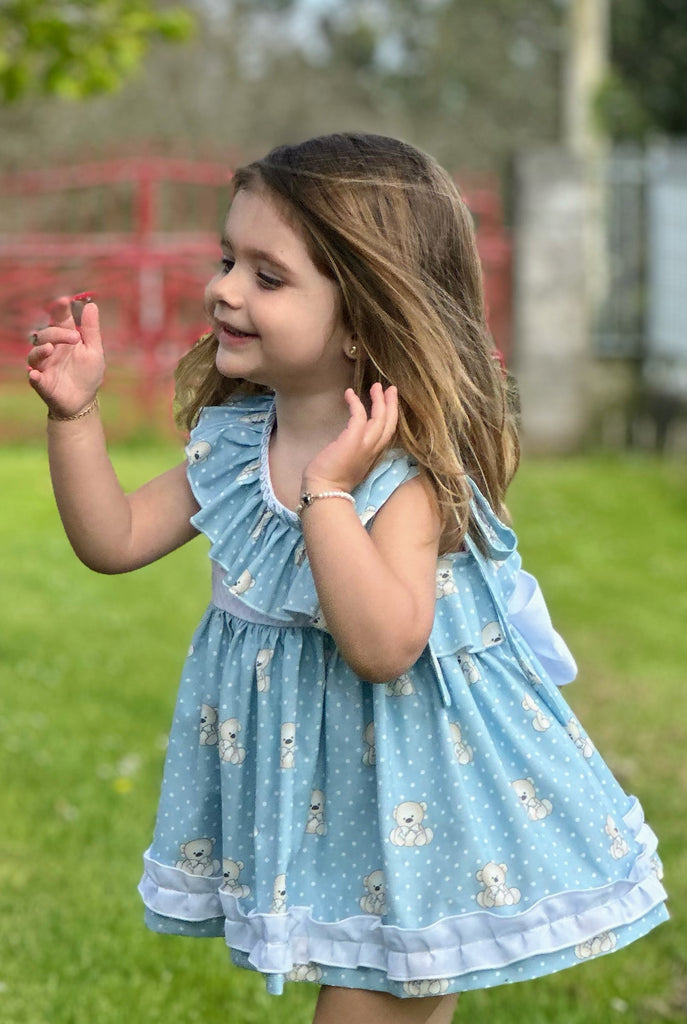 Sonata Infantil Girls Blue Teddy Summer Dress VE2522- MADE TO ORDER