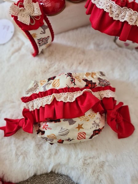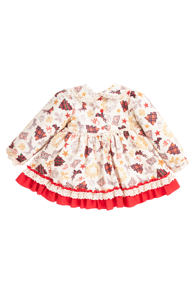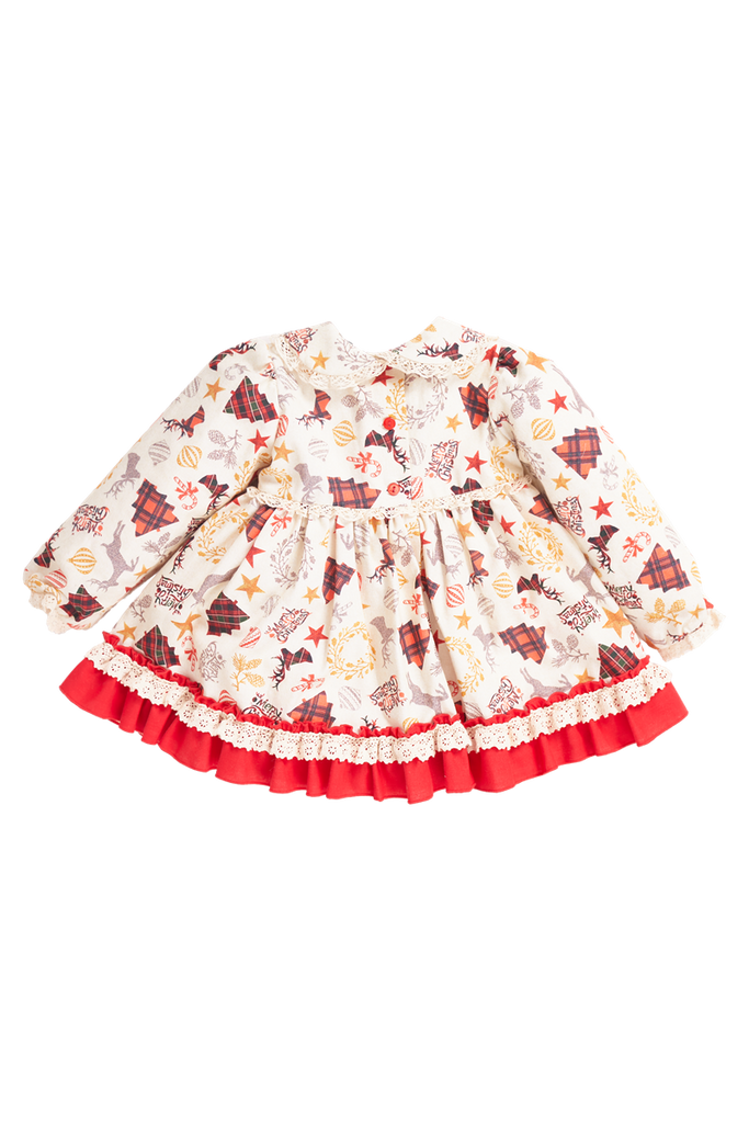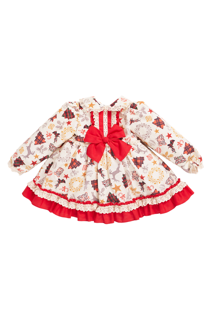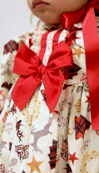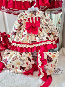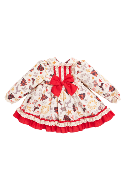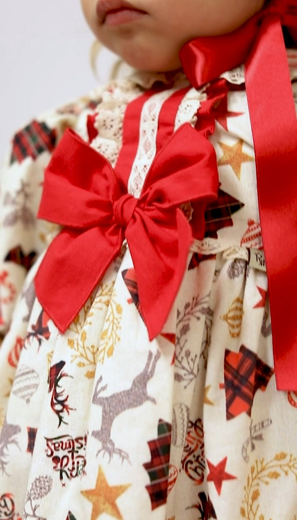 Spanish baby girls Christmas printed dress by Ricittos. Older girls dress also available separately here. In stock ready to ship