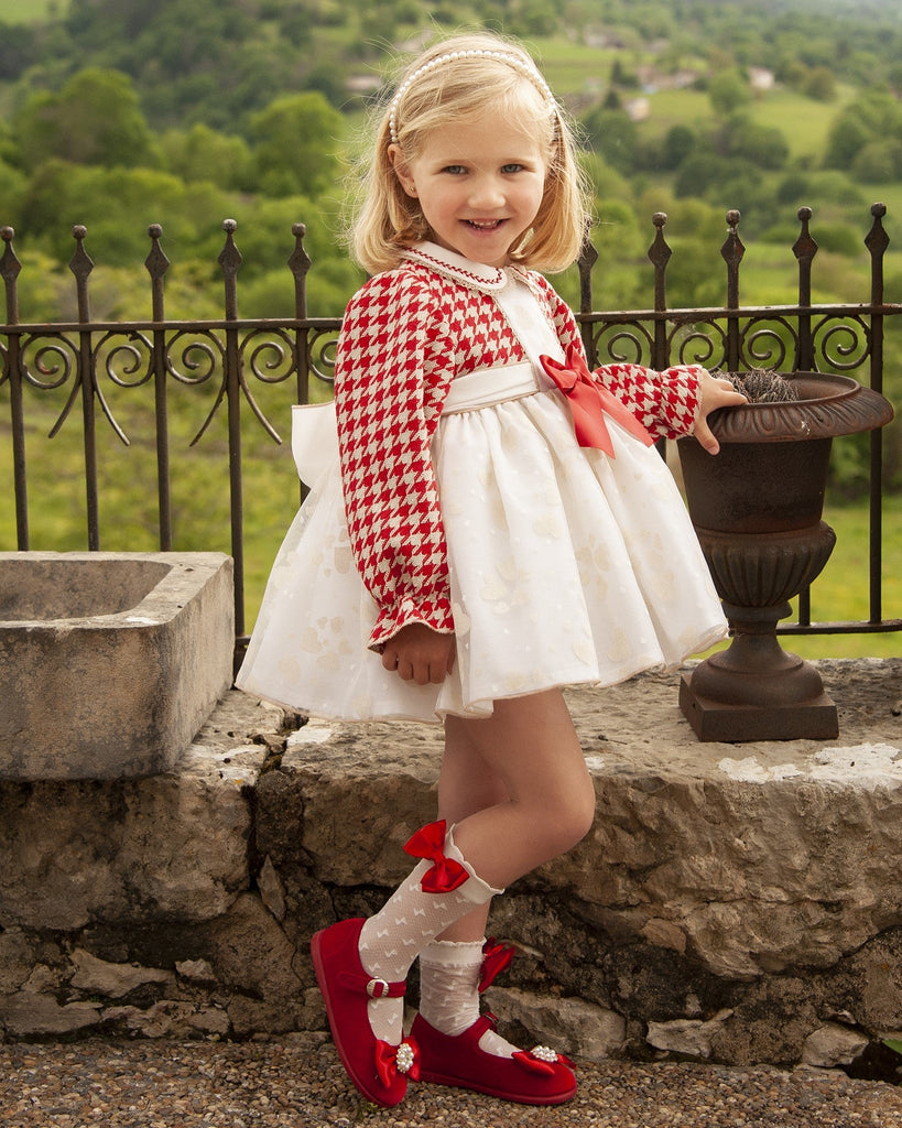 Sonata Spanish Girls Red & Cream Dogtooth Puffball Dress IN2308 3y - IN STOCK NOW