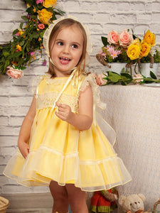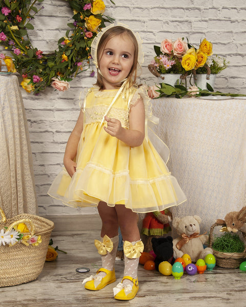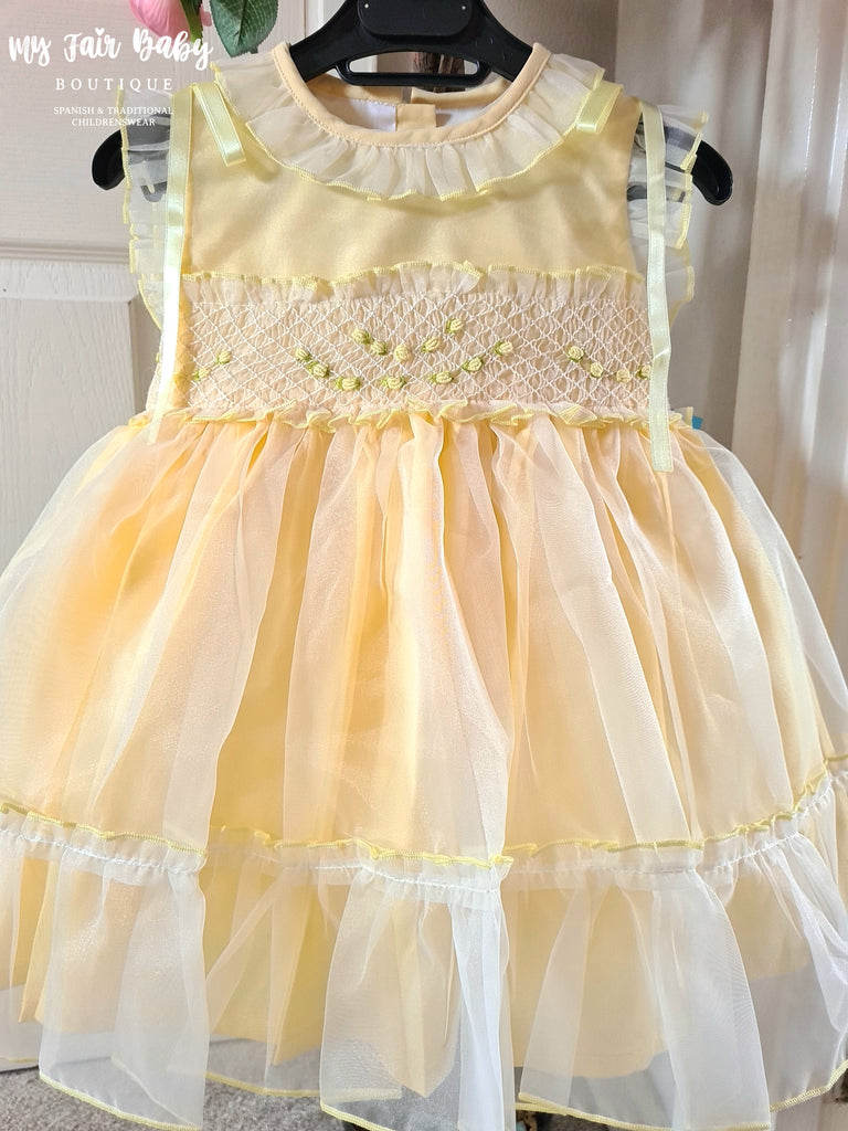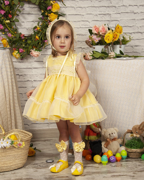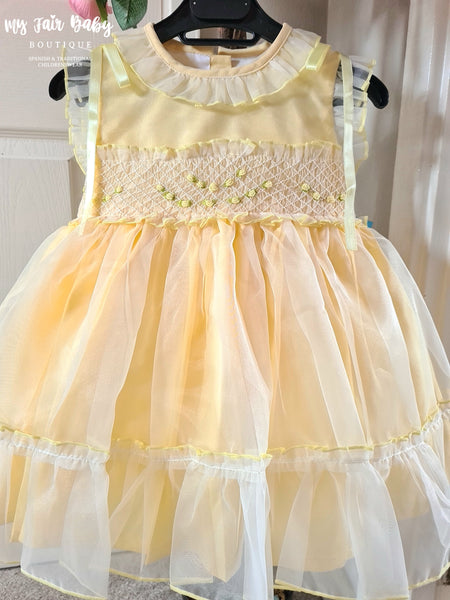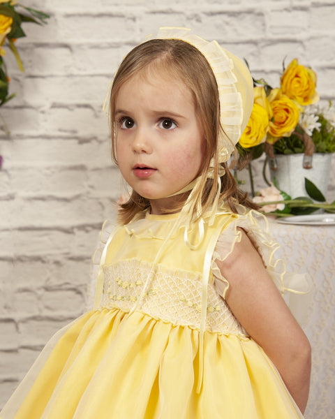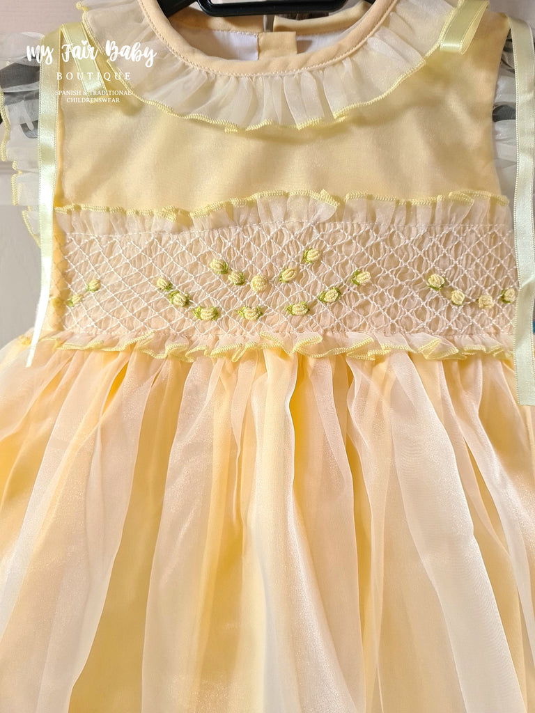 Sonata Infantil Spanish Girls Lemon Smocked Organza Dress PC2310 ~ 4,5,6y ~ IN STOCK NOW