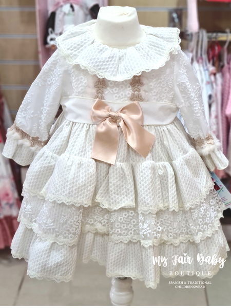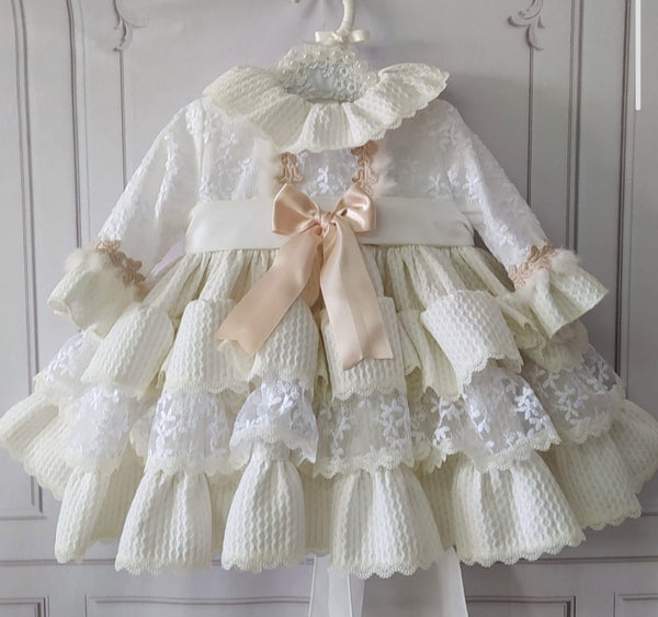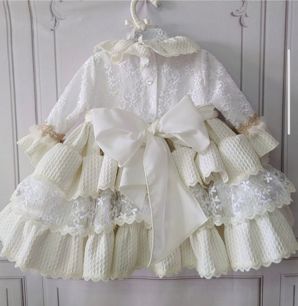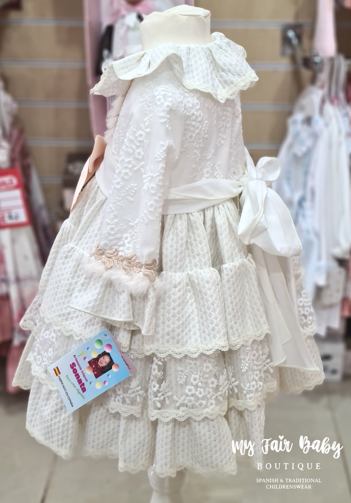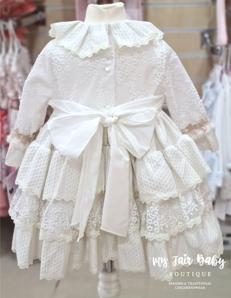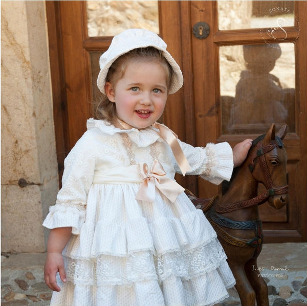 Sonata Infantil Spanish Girls Cream Ruffles Sole Puffball Dress IN12 - MADE TO ORDER