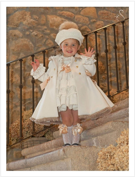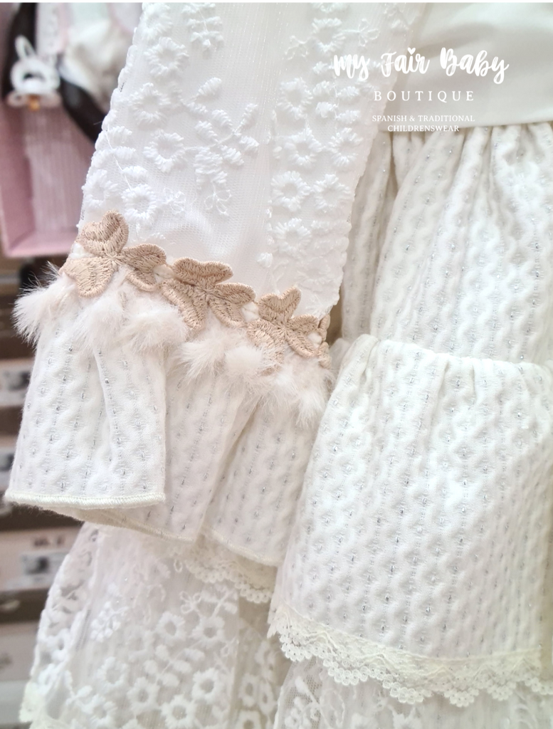 Sonata Infantil Spanish girls cream ruffles Sole puffball dress with embroidery and fur trim. True to size fitting. the matching bonnet, socks and coat are all available to order separately. This item is made to order and takes approximately 8 weeks to arrive from the order date (if you need the item sooner please message us to discuss this)