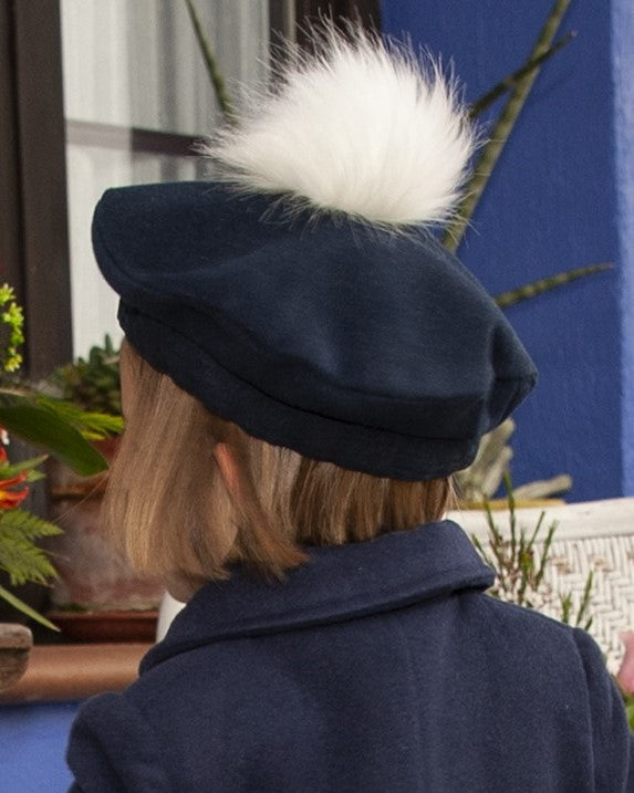 Sonata Infantil luxury Spanish girls navy winter coat. True to size fitting. The beret is not included but is available to order seperately. This item is made to order and takes approximately 8 weeks to arrive from the order date (if you need the item sooner please message us to discuss this)