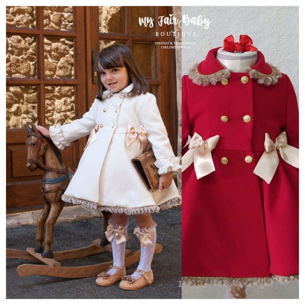 Sonata Infantil Spanish Girls Valeria Winter Coats - Cream or Red - MADE TO ORDER