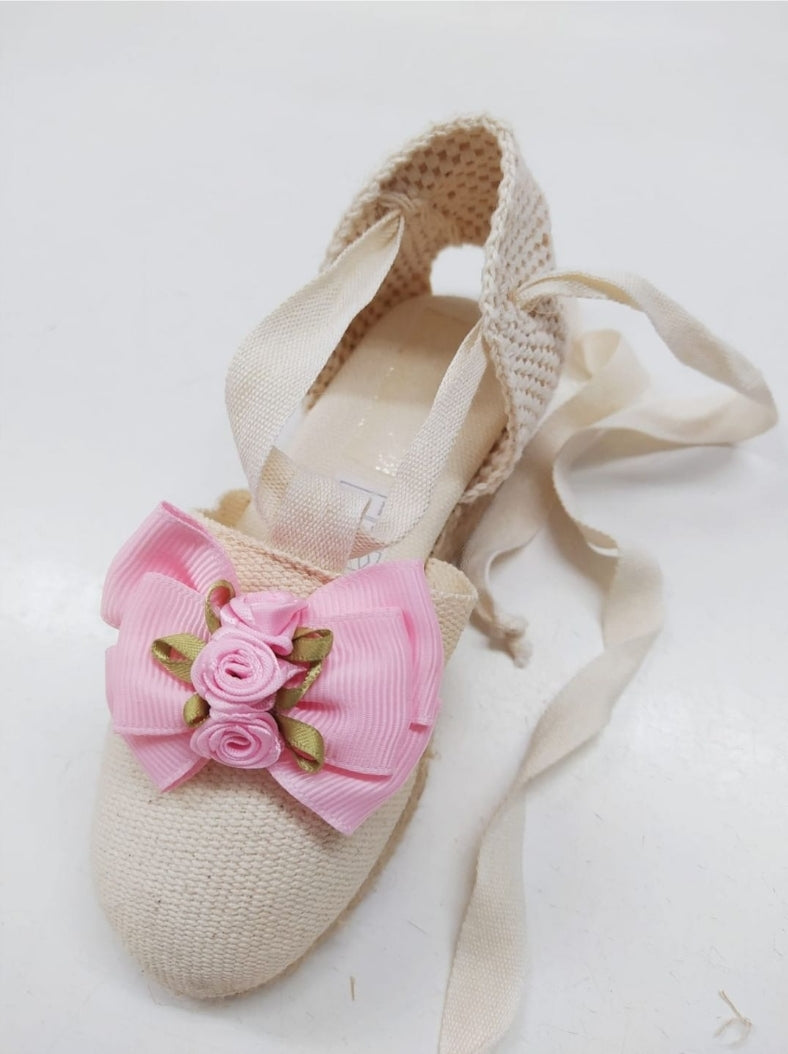 Sonata Spanish Girls Beige & Pink Bow & Rose Canvas Summer Shoes VE2132 - MADE TO ORDER
