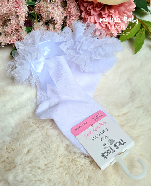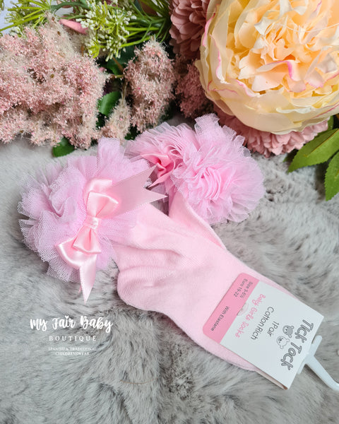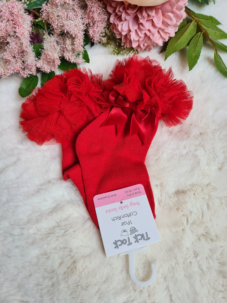 Spanish Style Girls Bowed Tutu Socks - Pink, White or Red