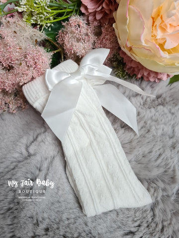 Spanish Style Girls White Knee High Bow Socks - 0-9y