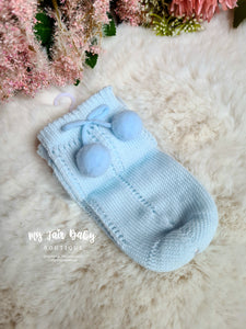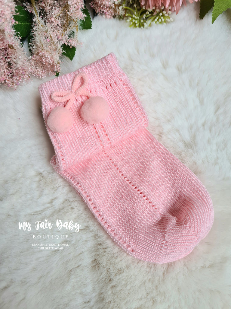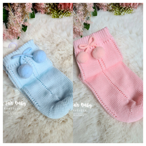 Spanish Ankle High Pom Pom Socks - Blue or Pink - Size 9-11