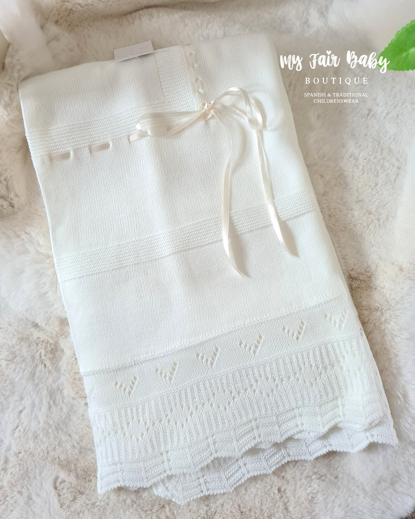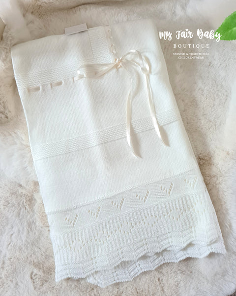 Spanish Unisex Baby Cream Ribbon Slot Shawl / Blanket