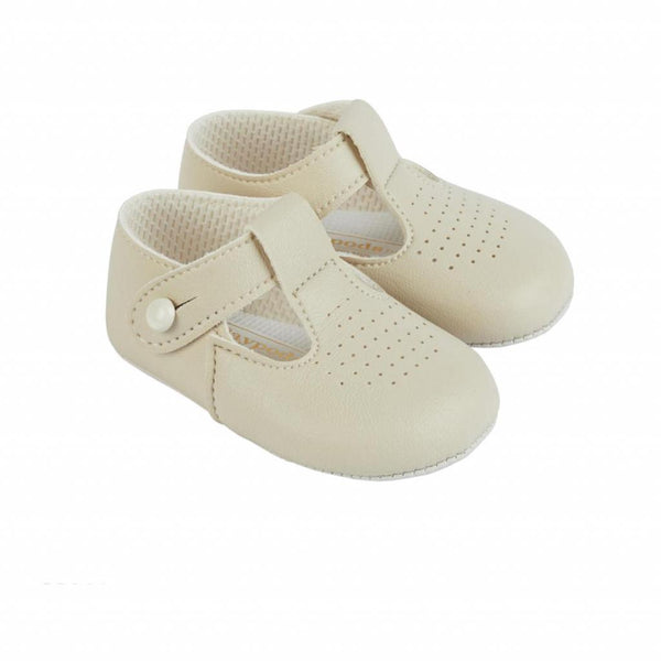 Traditional Baby Boys Soft Soled Baypod Pram Shoes Biscuit